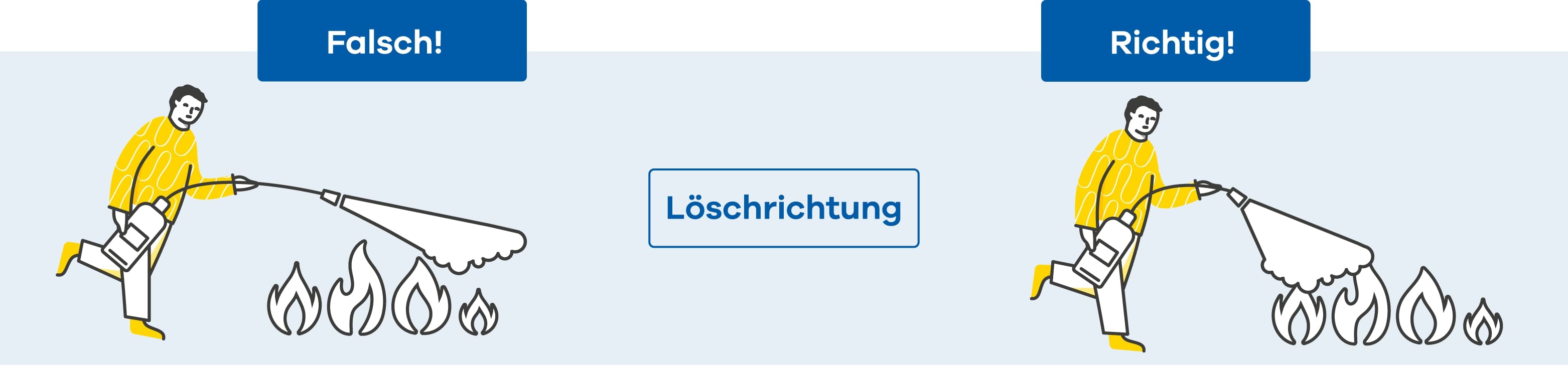 Die richtige Handhabung eines Feuerlöschers ist entscheidend, da er nur eine kurze Löschdauer hat. Hier sind einige Grundsätze, die wir beachten sollten: