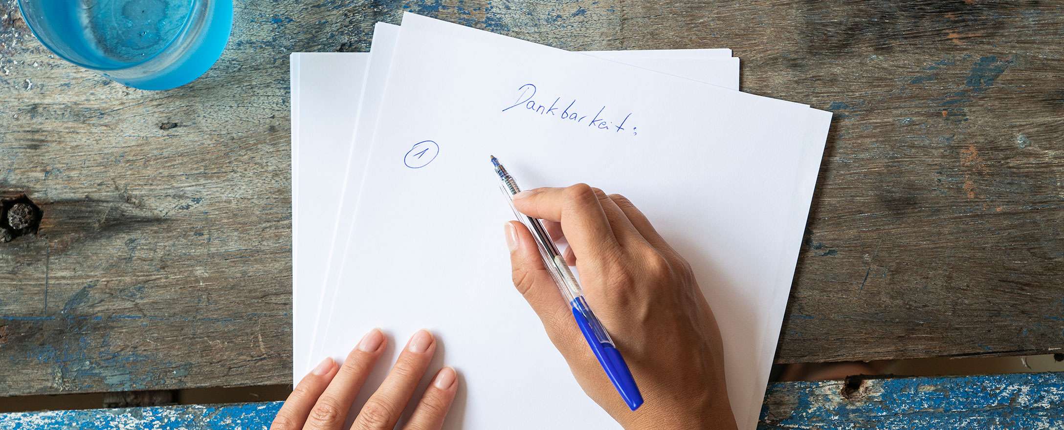 Einfach ausprobieren: Wofür sind Sie anderen dankbar? Machen Sie eine Liste Ihrer Liebsten, von Freunden, Arbeitskollegen oder auch Bekannten und schreiben Sie neben jeden Namen, wofür Sie ihm/ihr dankbar sind (z.B. Karin, weil sie mir das Keksrezept ihrer Oma verraten hat. Günter, weil er mich bei einem Treffen nie warten lässt...).