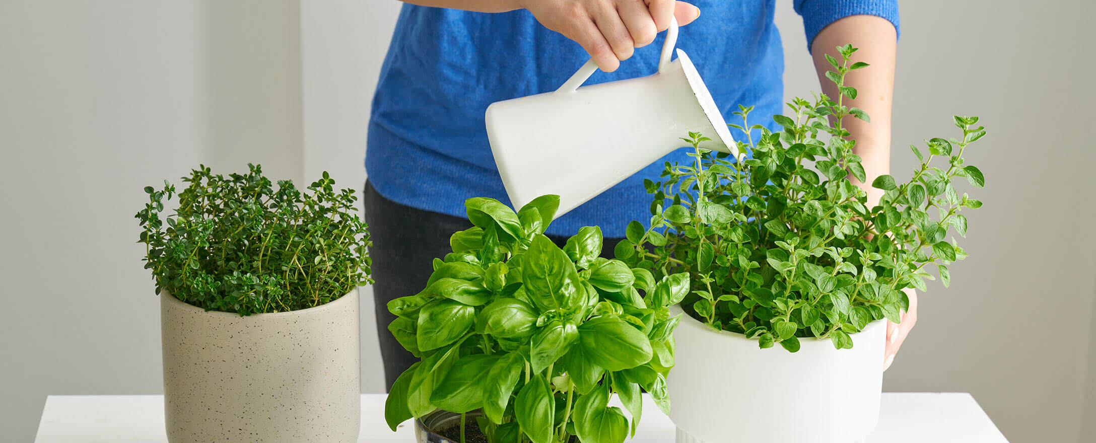 frau giesst kuechenkraeuter