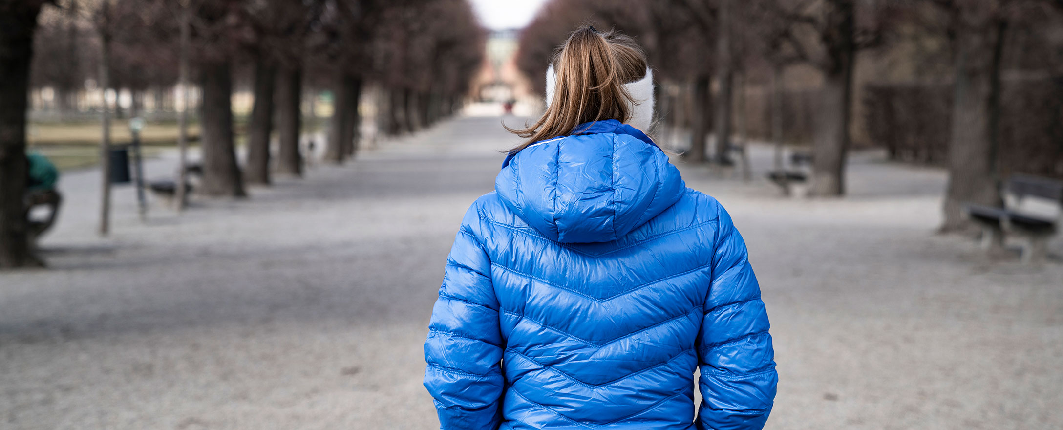 frau geht im augarten spazieren