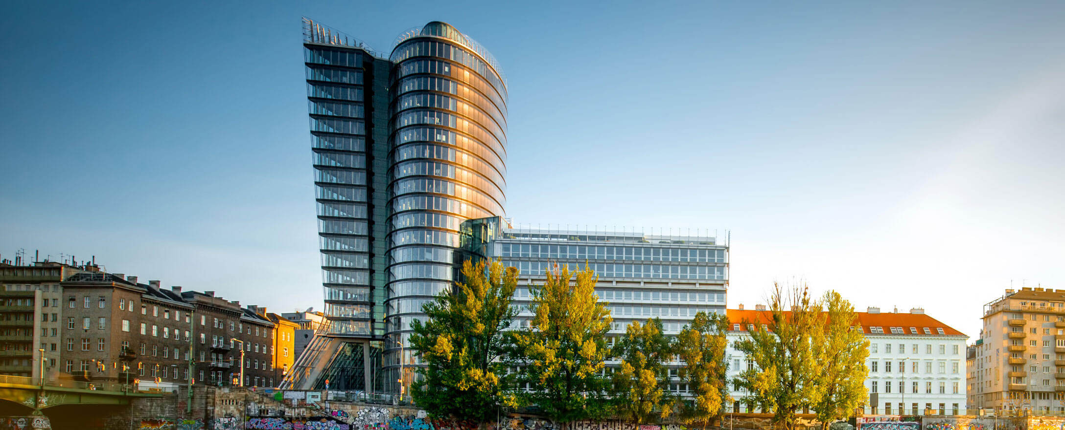 Der UNIQA Tower ist vom Donaukanal schwer wegzudenken, steht dort aber noch gar nicht so lange: nach langjähriger Planung, federführend war Architekt Heinz Neumann, und drei Jahren Bauzeit ist er 2005 eröffnet worden. Auf 75 Metern Höhe und 22 Obergeschossen können seitdem, wenn sie nicht im Homeoffice sind, mehr als tausend UNIQA Mitarbeiterinnen und Mitarbeiter arbeiten.