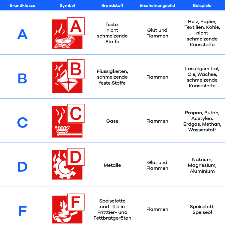 Brandklassen dienen der Klassifizierung aller brennbaren Stoffe. Sie ermöglichen die Wahl des richtigen Löschmittels bei der Brandbekämpfung.