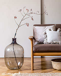 Dazu trägt auch die Farbwelt bei. Die hellen, zurückhaltenden Farben ergänzen wir jetzt mit einzelnen dunklen Elementen. Damit es weiter gemütlich bleibt, spielen hier vor allem natürliche, erdige Farbtöne wie braun, grün und violett eine wichtige Rolle. So einfach holen wir uns ein Stück Japan nach Hause!
